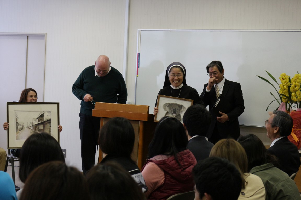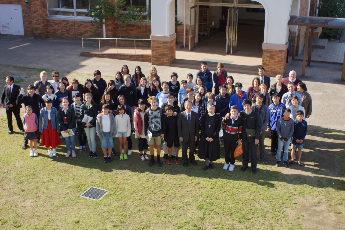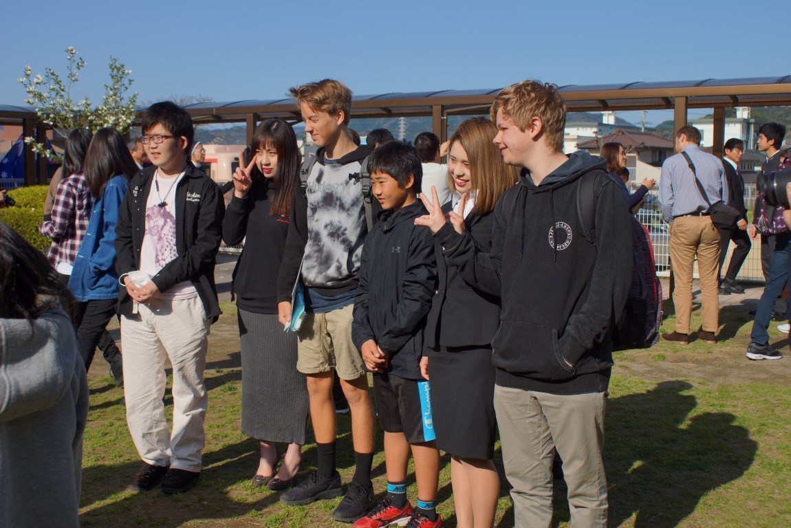 3月27日(火)夕刻、修学旅行で来日していたオーストラリアのバルコムグラマースクールの生徒13名、引率教諭3名を本校に迎えました。当日は、本校の生徒がホームステイする家庭とバルコムスクールの生徒との顔合わせをし、それぞれの家庭に向かいました。