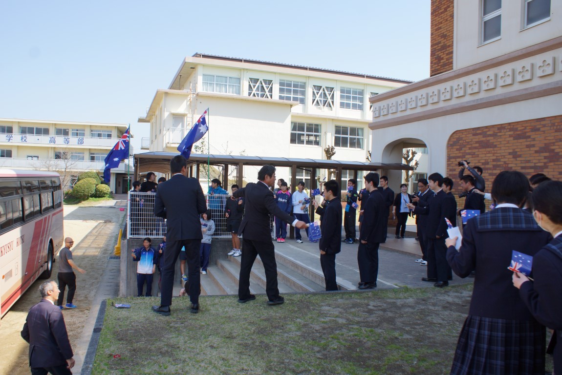 オーストラリアのバルコムグラマースクールの生徒 歓迎セレモニー