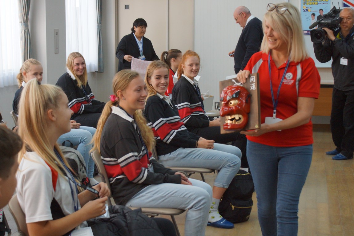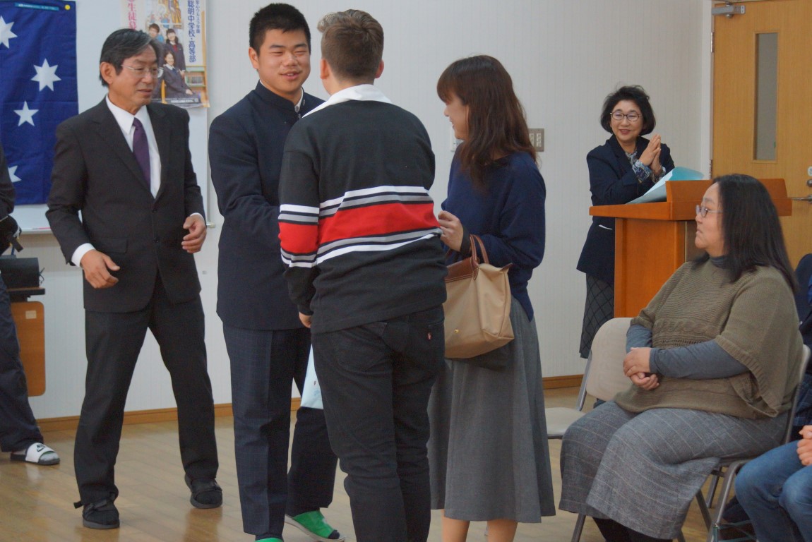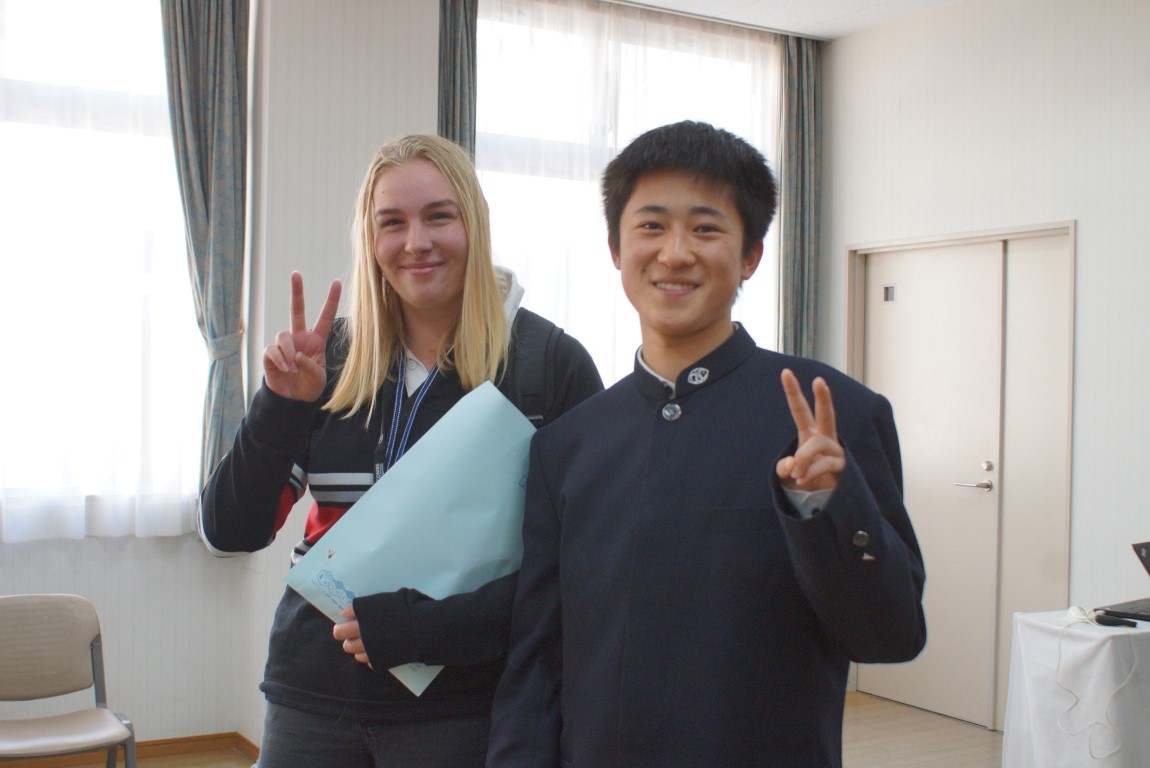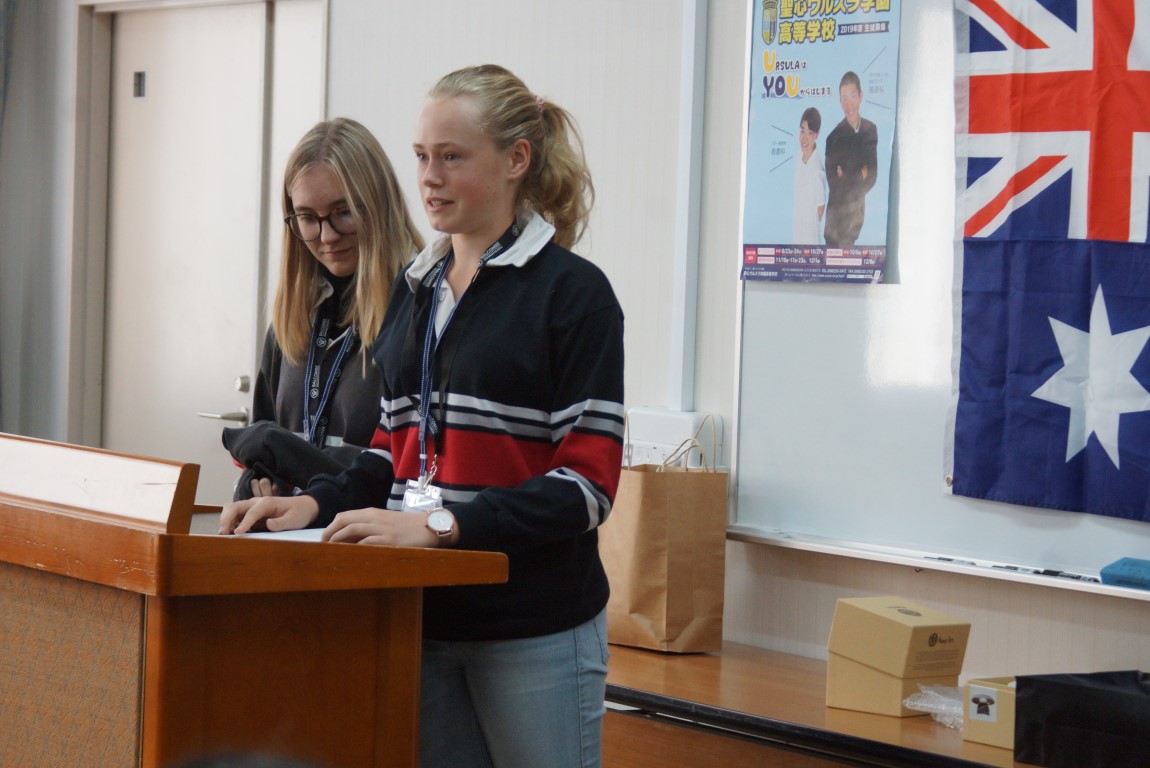 本日27日は本校に訪れ、歓迎セレモニーを行いました。ウルスラの生徒と聡明の生徒代表がそれぞれ延岡とウルスラ学園の紹介を英語でおこなってくれました。その後、本校の生徒でホームステイの受入れをする家庭とバルコムスクールの生徒との顔合わせをし、それぞれの家庭に向かいました。