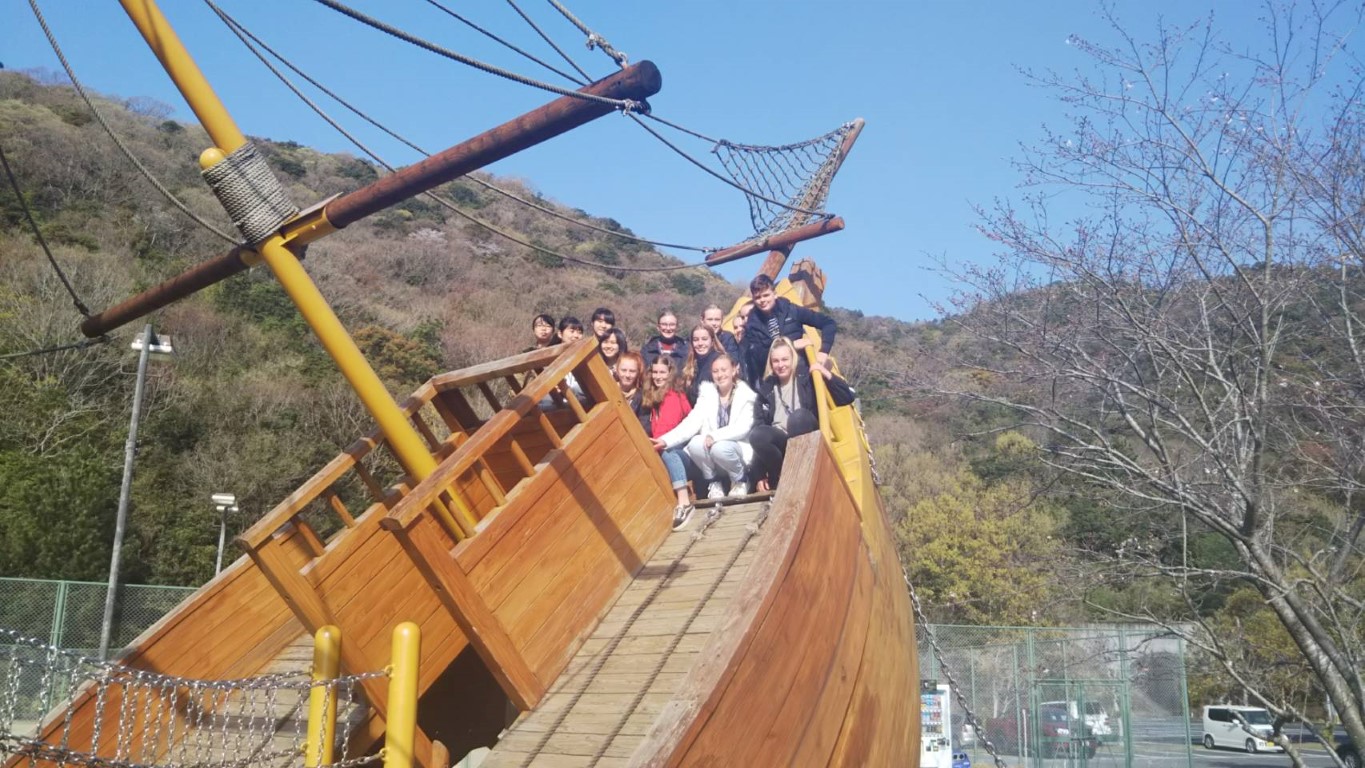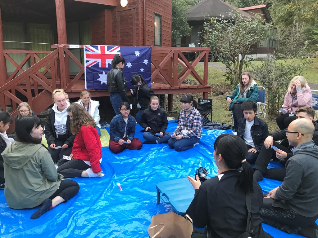 3月26日(火)、修学旅行で来日したオーストラリアのバルコムグラマースクールの生徒10名、引率教諭2名が延岡にやって来ました。この日は夕方に延岡に到着し、北浦にあるケビンを借りて宿泊し、希望の生徒たちとバーベキューやゲームをしてともに時間を過ごしました。