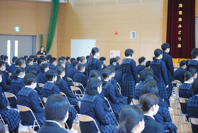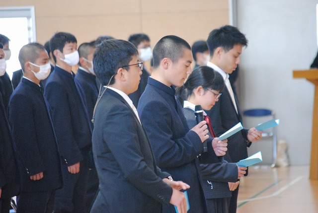 高校の新入生を代表し、小八重春菜さん(旭中学校出身)が誓いの言葉を述べました。少し緊張した表情でしたが、それぞれ新しい学校生活に胸を弾ませているようでした。