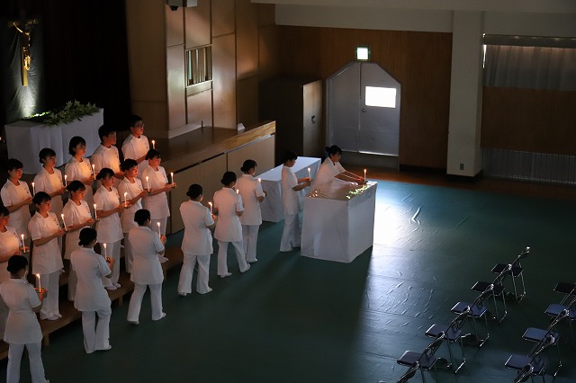 本日誓いをたてた皆さんには、本校の教訓である『愛・感謝・犠牲奉仕』の精神を念頭におき、患者様のことを最優先に考え、行動することができる看護師になってもらいたいと思います。