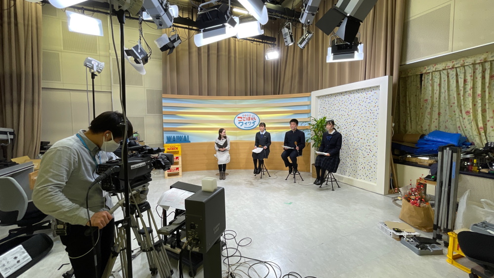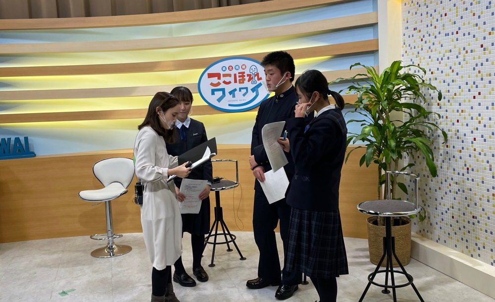 1月8日(金)に放送部がケーブルメディアワイワイさんのスタジオで、全九州高等学校総合文化祭熊本大会放送部門入賞についての取材を受けました。