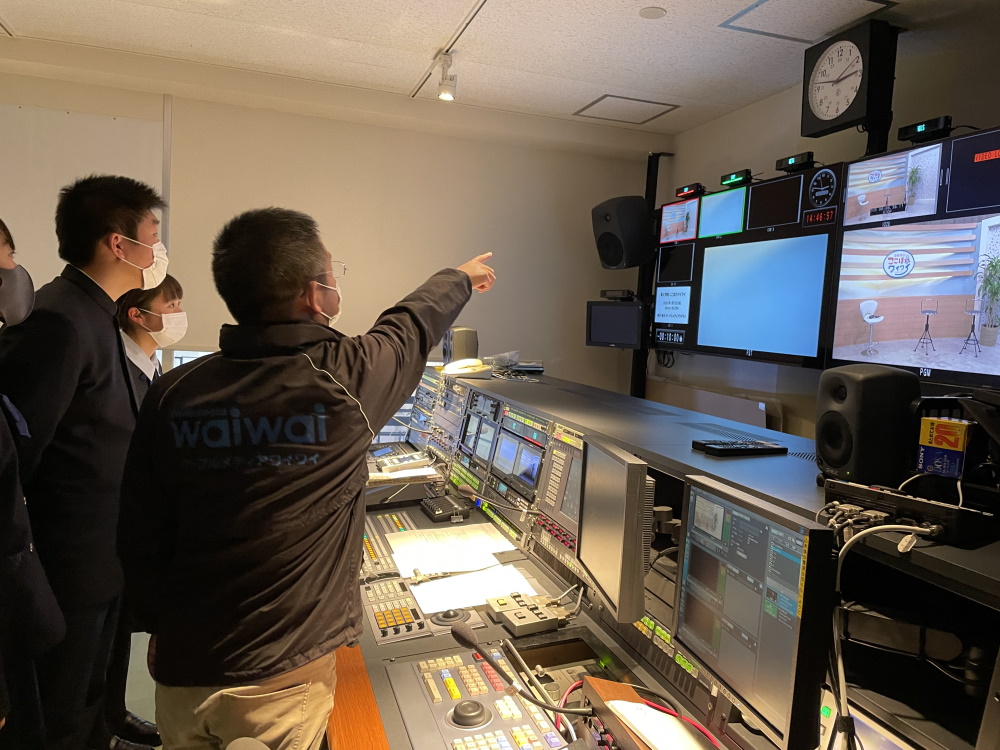 また、収録後はテレビ局の中を案内していただき、機材なども見せていただきました。今回参加した3名は、とても勉強になったと喜んでいました。