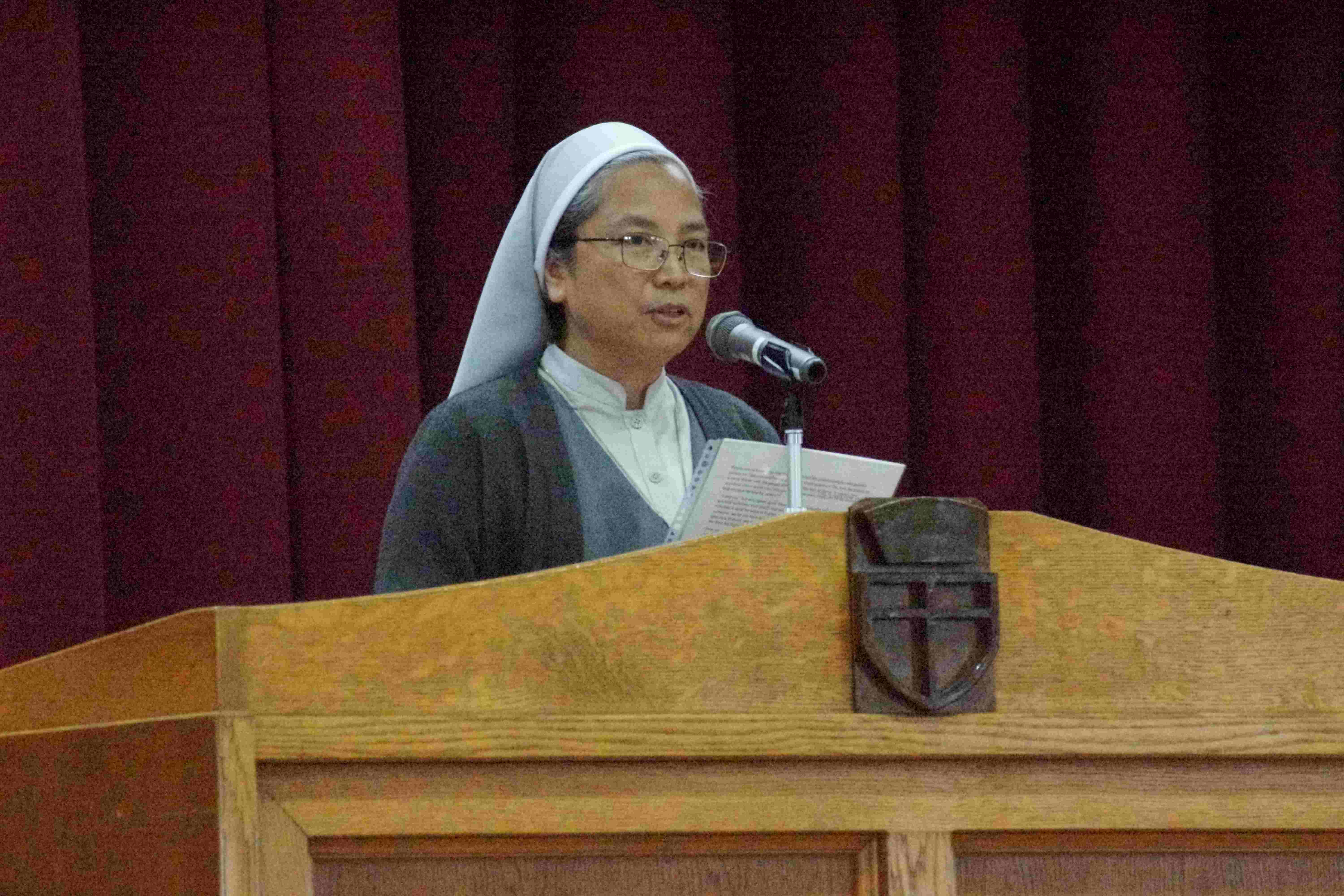 聖心(みこころの)宣教女修道会のマードレ・クリスティータ・デ・カストロ総長が、フィリピンから来校され、講話がありました。