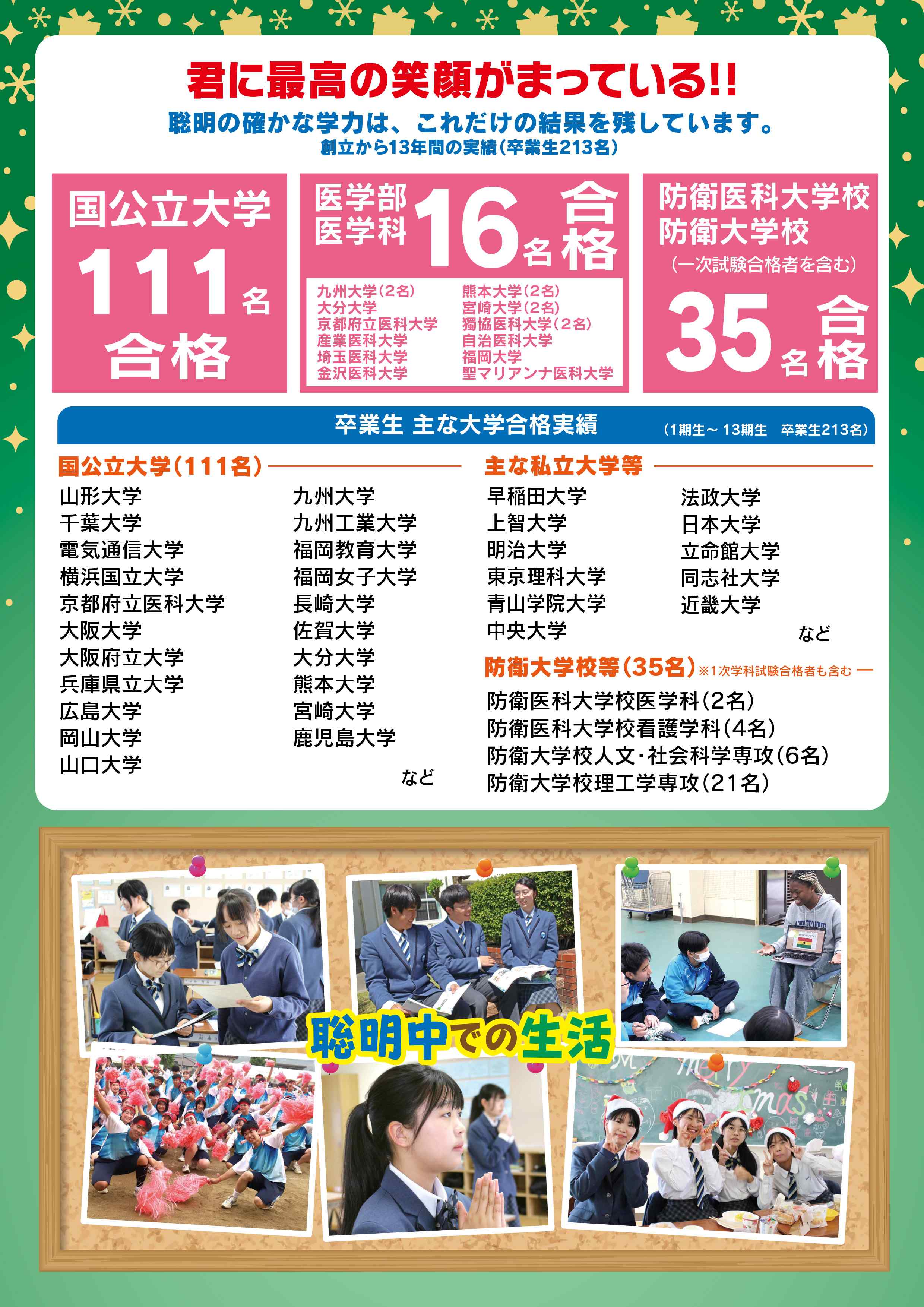 ◎聡明中学校の説明(教育内容、進路実績)