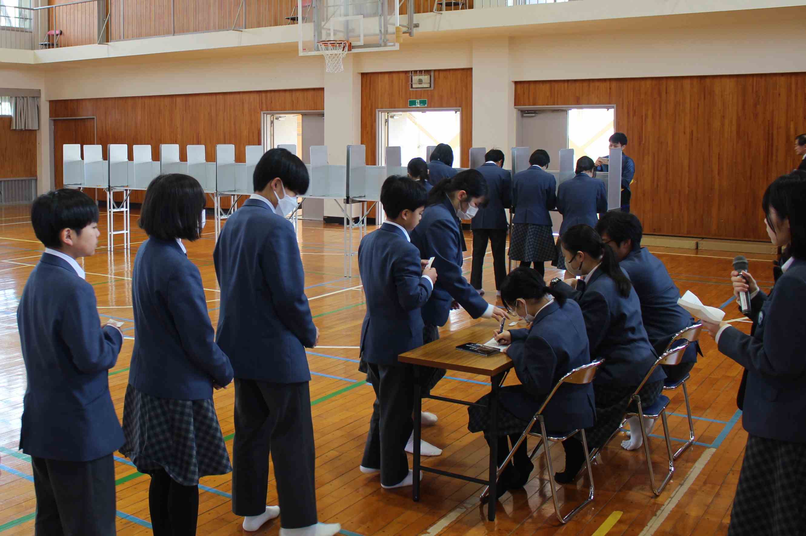 聖心ウルスラ学園聡明中学校トップ 新着情報一覧 生徒会役員立会演説会・選挙 新着情報NEWS 2026.03.10 生徒会役員立会演説会・選挙 3月10日(火)、生徒会役員立会演説会と選挙を実施しました。 立候補した生徒たちは、より良い学校づくりのためにそれぞれ公約を掲げ、全校生徒に向けて熱意を込めて思いを伝えていました。 演説会の後は、実際の選挙で使用されている記載台と投票箱をお借りし、本格的な形式で投票を行いました。 今回の選挙を通して、生徒たちが学校づくりに主体的に関わろうとする意識を高める貴重な機会となりました。 聖心ウルスラ学園聡明中学校トップ 学校案内 学校特色 スクールライフ 進路情報 入学案内 職員採用案内